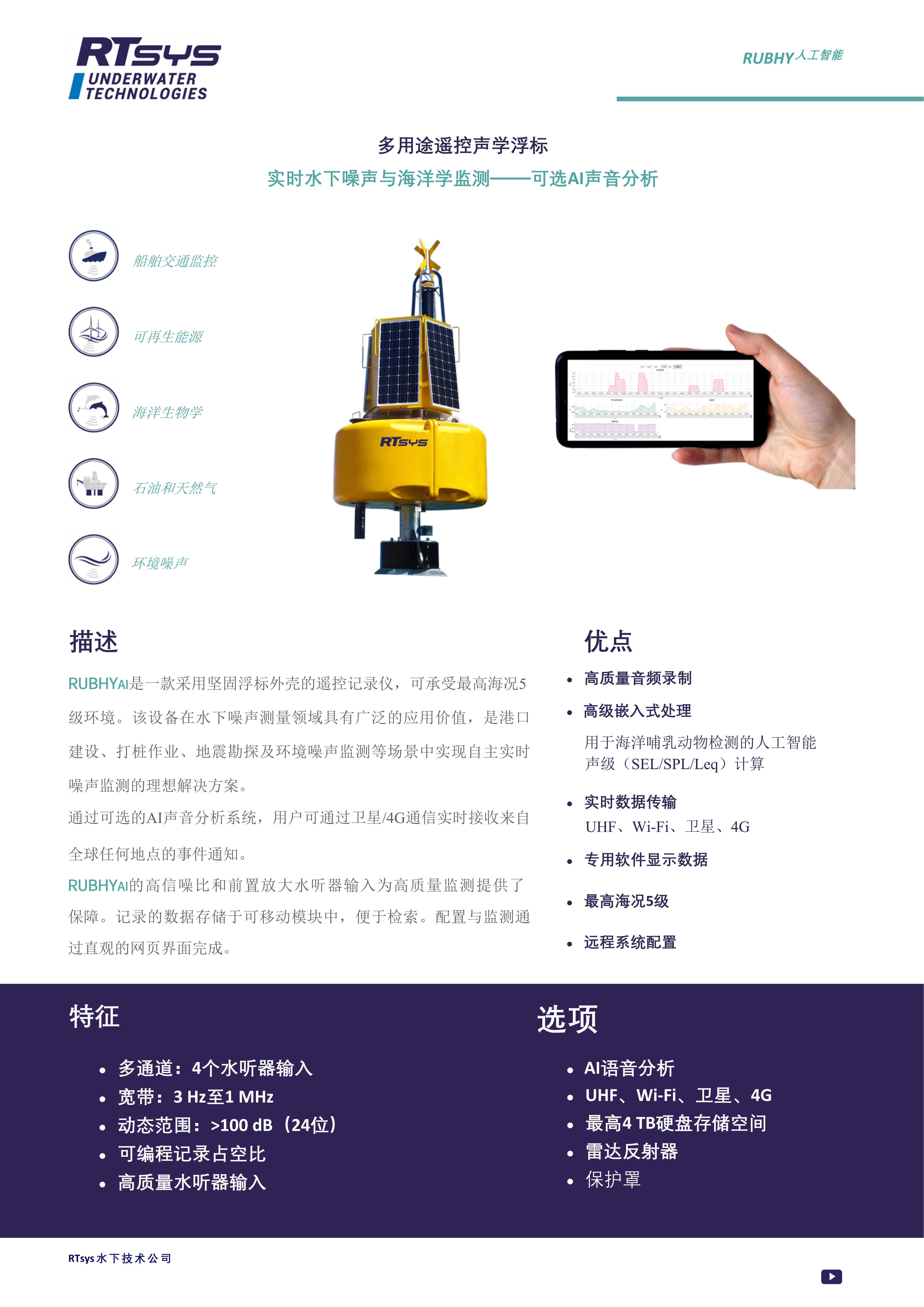 • 產品名稱:多用途遙控聲學浮標 實時水下噪聲與海洋學監測——可選AI聲音分析